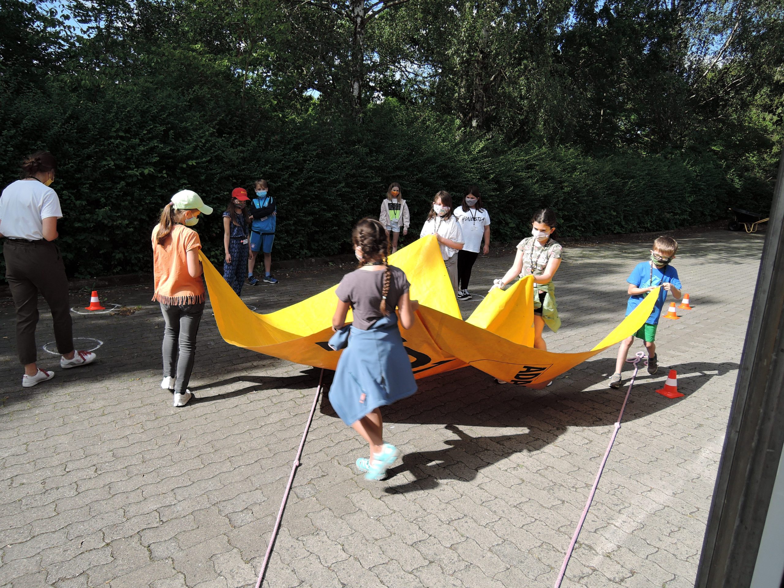 Immer wieder kommt es zu schweren Unfällen, weil Bus- oder Lkw-Fahrer beim Abbiegen einen Fußgänger oder Radfahrer übersehen, der sich im „Toten Winkel“ befindet. Besonders häufig betroffen sind Schulkinder, die aufgrund ihrer geringen Körpergröße und ihres noch nicht voll entwickelten Gefahrenbewusstseins eine besonders gefährdete Gruppe der Verkehrsteilnehmer bilden. Aus diesem Grund führten die 4. Klässlern zusammen mit dem ADAC, am 01.07. und 02.07.2020 ein „Toter – Winkel – Training“ durch. Dazu stellte uns das Busunternehmen Losert freundlicherweise einen Bus zur Verfügung. Alle Kinder konnten bewusst wahrnehmen, an welchen Stellen sie neben dem Bus mit dem Fahrer Blickkontakt halten können und durften auch in die Rolle des Busfahrers schlüpfen. Auf dem Fahrersitz erkannten die Schüler, dass die Busspiegel nicht ausreichen, um alle Bereiche um den Bus einsehen zu können. Auch der tote Winkel von Fußgängern, Radfahrern und anderen Verkehrsteilnehmern wurde anschaulich besprochen.